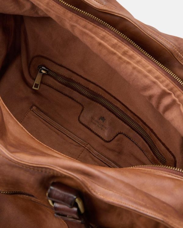 An unconventional weekend bag, ideal for the man of character. With its numerous pockets and large compartments, it is perfect for work and travel. The eye-catching details and the irresistible two-tone vintage effect in natural leather make it an ideal accessory for students and professionals alike, adapting to any outfit, from classic to sporty. For the man projected into the future.