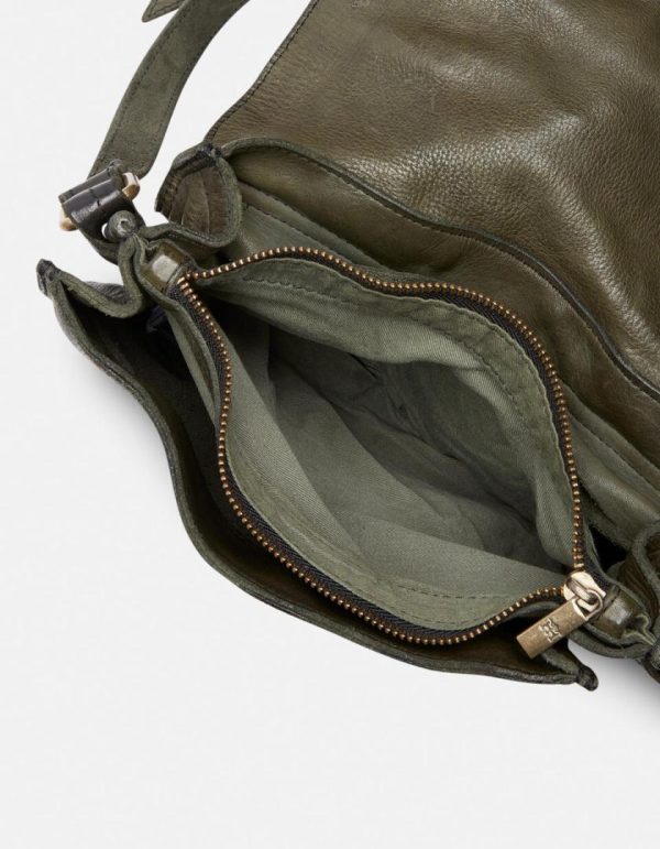 This leather is made with a very complex and difficult treatment. It begins with a skin called CRUST. Each bag is first completely assembled, followed by a dye bath during which it loses 30% of its volume. The bags are then laid out and dried slowly in the open air, then treated one by one by hand with a natural beeswax. This last step gives the product an unmistakable softness and a beautiful aged effect. This type of processing is 100% environmentally friendly and metal free.