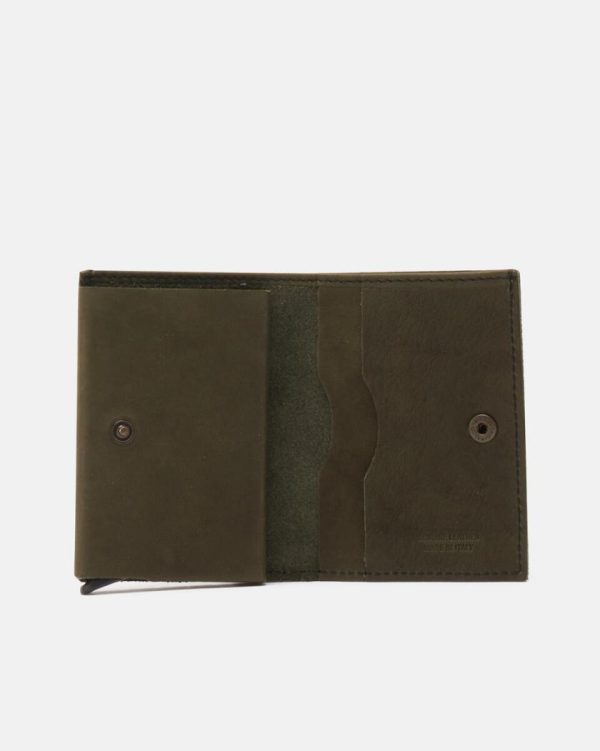Interior details: 6 card slots with snap mechanism, two card slots and unlined banknote compartment.