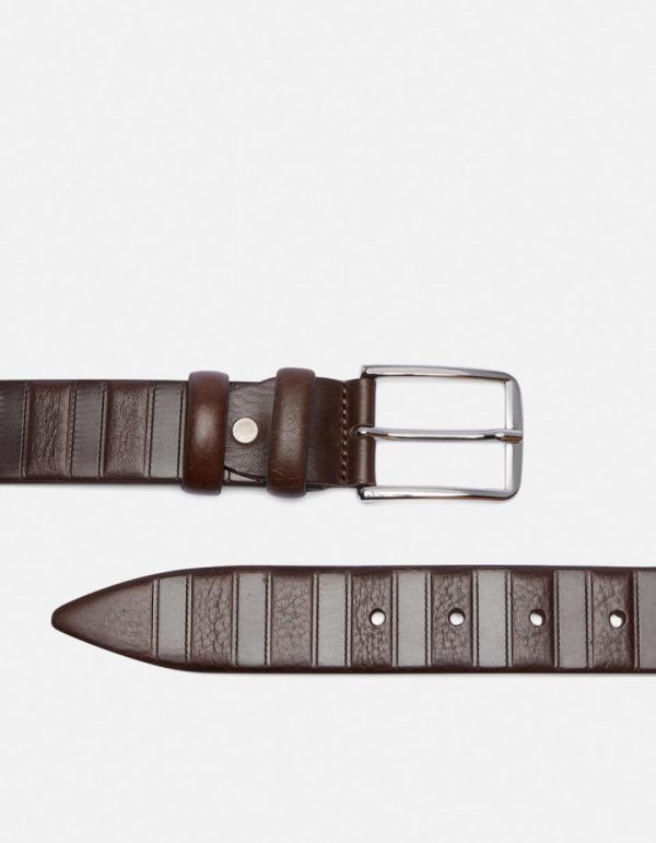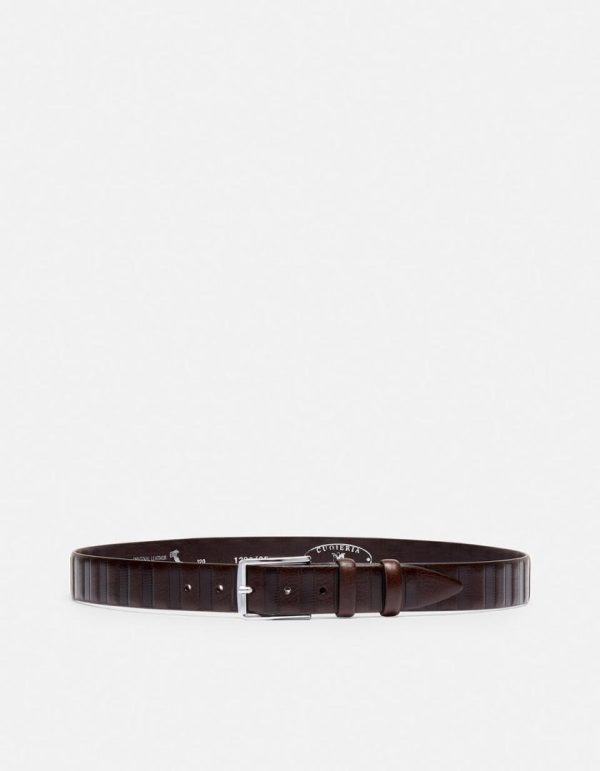 Men Cuoieria Fiorentina Men Belts | Leather Belt For Jeans With Vertical Striped Design Dark Brown