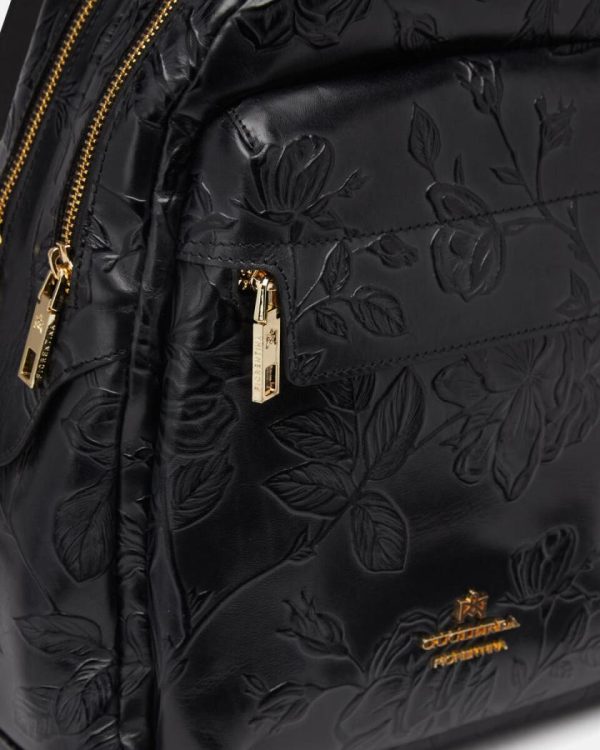 Mimi represents a true style icon and represents a worldwide exclusive of the brand. The peculiarity is contained in the long articulated process consisting of over 13 processing steps of the floral motif. Not only calfskin, but a true artwork, expertly hand-painted on different levels. The end result is a unique material of its kind, with which small masterpieces are made.