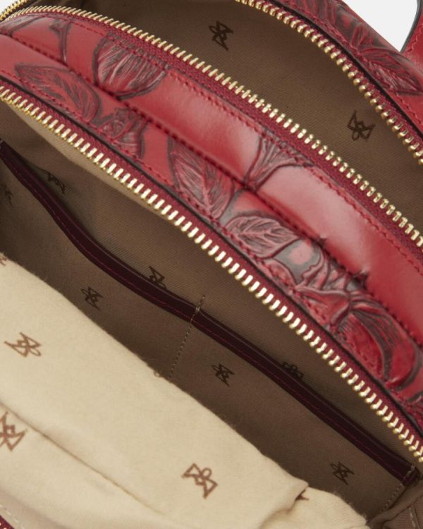 Mimi represents a true style icon and represents a worldwide exclusive of the brand. The peculiarity is contained in the long articulated process consisting of over 13 processing steps of the floral motif. Not only calfskin, but a true artwork, expertly hand-painted on different levels. The end result is a unique material of its kind, with which small masterpieces are made.