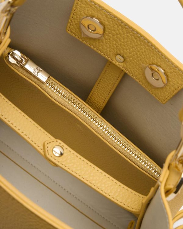 A bucket full of style! When the days get hectic, between work commitments and drinks with friends, what you need is this Small Bucket. A practical and contained bag that is contemporary, to carry around between business meetings and galas, with a soft leather enriched with full-bodied colours, full of character. To shine throughout the day.