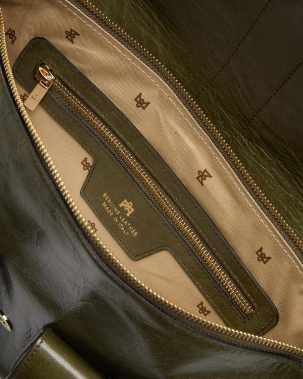 Refined calfskin leather with a soft hand, shiny and wrinkled appearance.