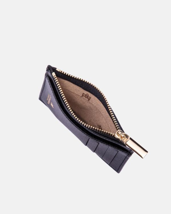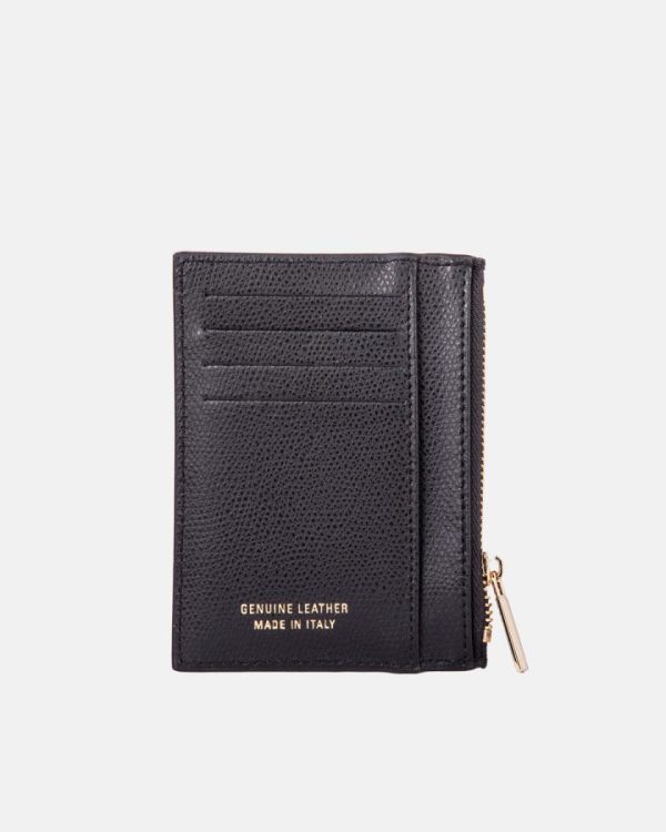External details: 8 credit card slots, 2 lateral pockets, zipped purse and gold coloured fire printed logo.