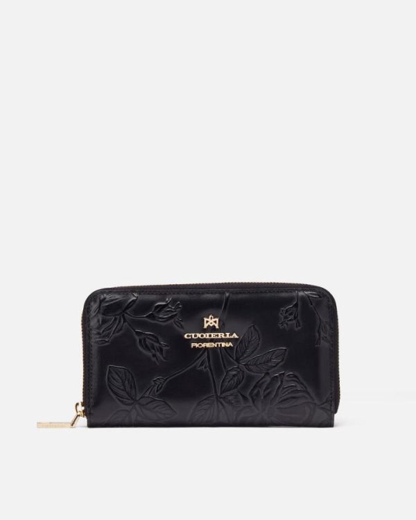 Slim silhouette and zip-around security clasp for this practical Mimì wallet. The romantic rose motif typical of the collection embellishes the wallet, so that comfort is combined with style. Combined with any type of bag from the same collection, it becomes an essential everyday accessory.