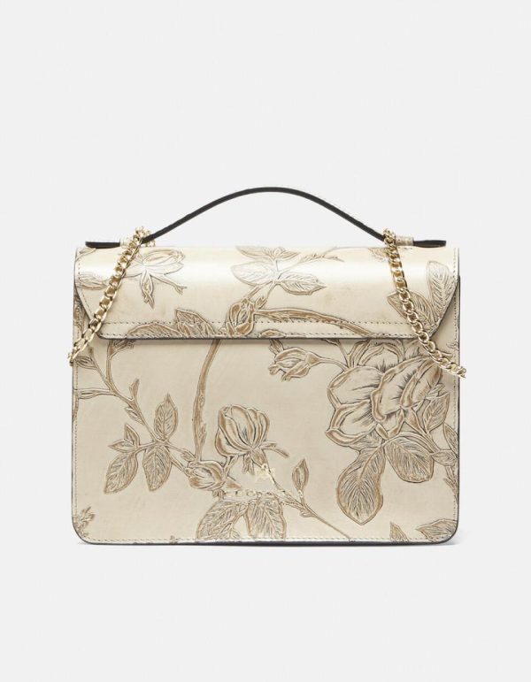 Mimi represents a true style icon and represents a worldwide exclusive of the brand. The peculiarity is contained in the long articulated process consisting of over 13 processing steps of the floral motif. Not only calfskin, but a true artwork, expertly hand-painted on different levels. The end result is a unique material of its kind, with which small masterpieces are made.