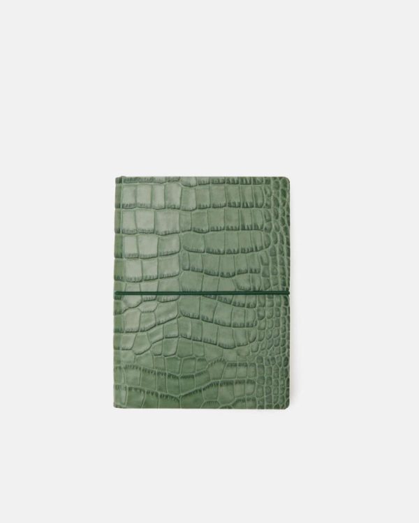 A cool and elegant notebook by Cuoieria Fiorentina. The cover, made of crocodile-printed calfskin, is closed by a practical elastic band: for those who like to be noticed during business meetings. A cuddle for yourself as a diary on which to take notes, or a welcome gift for busy friends who are always in a hurry.