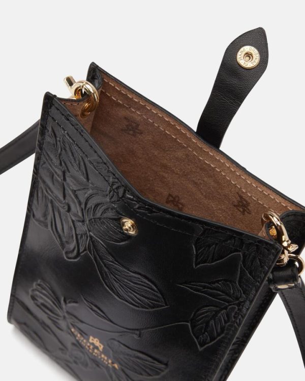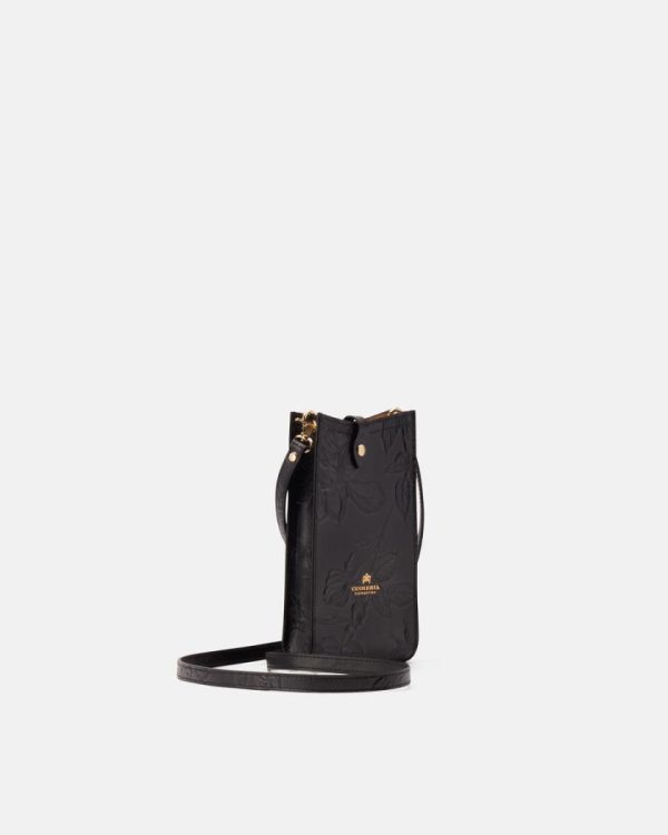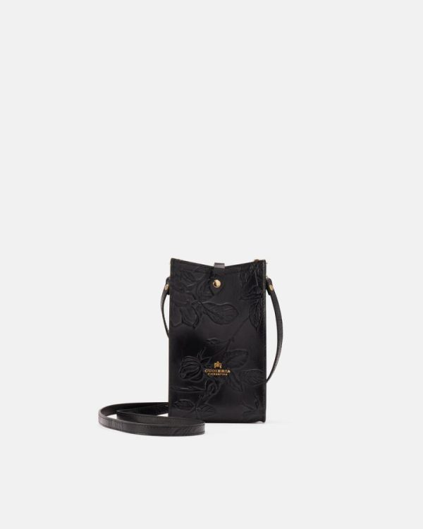 The convenience of always having your smartphone at hand, but in style. Thirteen layers of workmanship create a unique, unforgettable floral design. The thin, removable shoulder strap allows the phone holder to be worn comfortably, while the elegant button closure allows the mobile phone or your most precious documents to be kept safe. Exclusive touches make this diverse accessory ideal in every context, from busy business appointments to out-of-town trips with friends. Style and functionality.