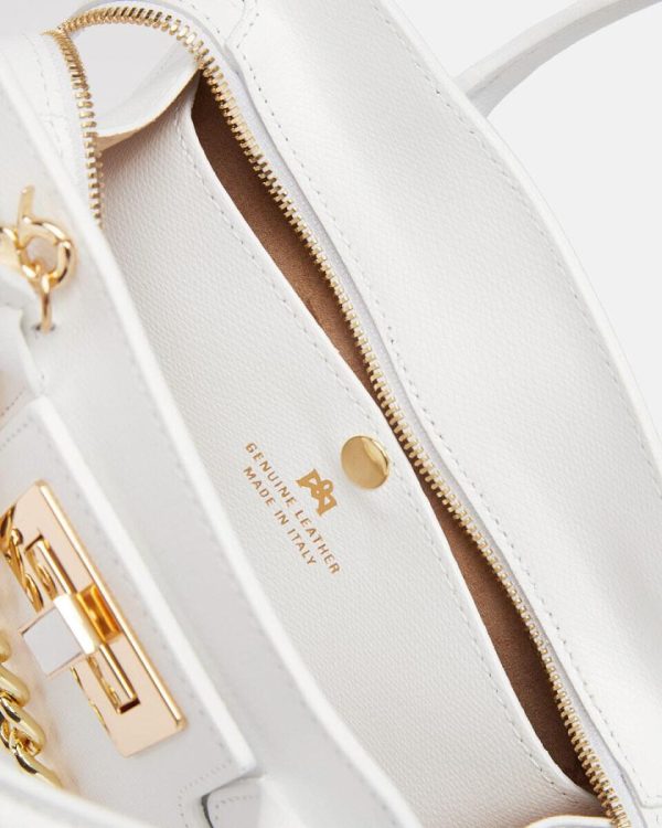 External details: front pocket with swivel closure with leather detail and logo printed in gold color.