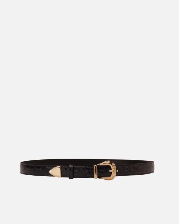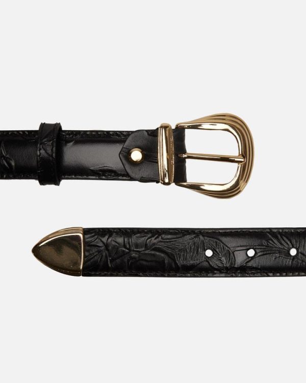 Elegant and bohemian, this delightful Mimì belt in fire-printed calfskin captivates with its unique and inimitable floral rose pattern. Perfect to embellish a simple, linear monochrome dress, it is the ideal complement to a romantic Iconic bag from the same collection.