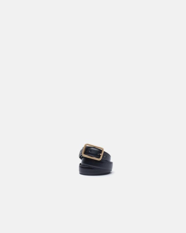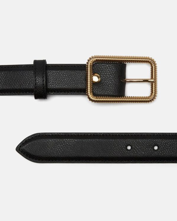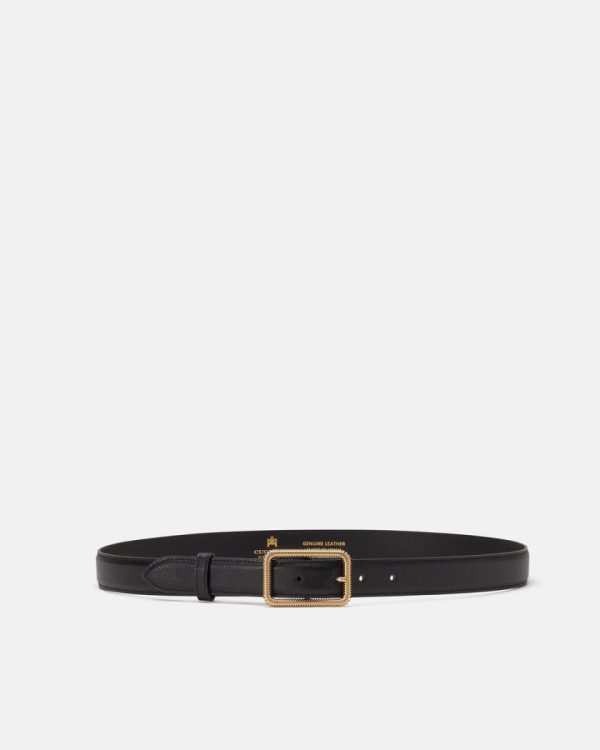 Rectangular buckle with gold finish.